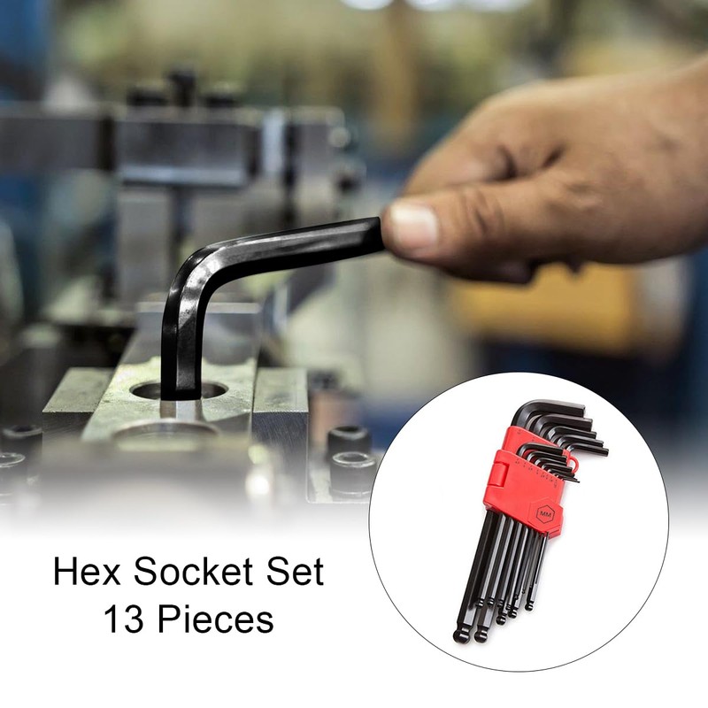 - Hexagon socket set 13 pieces: our hexagon socket set contains keys in 13 different sizes.