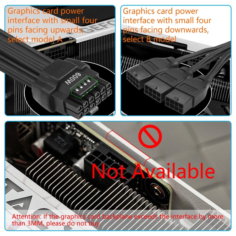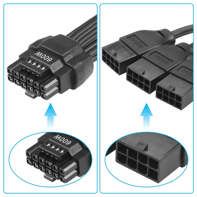 Interface 1: 16pin (12+4) 12VHPWR Male Connector Interface 2: 3 x 8Pin (6+2) Female Connector Model: male to female