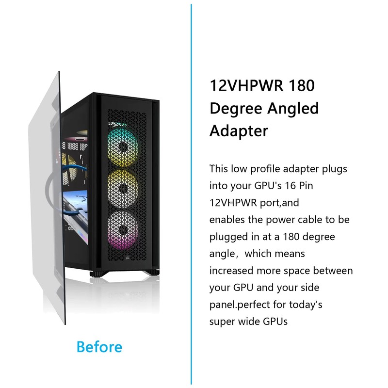• 600W 12VHPWR 16 Pin Angle Adapter, support maximum power output 600W, support maximum power output 600W