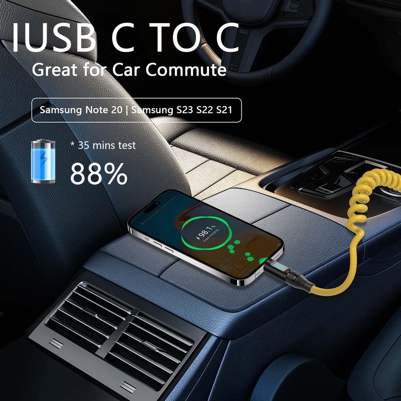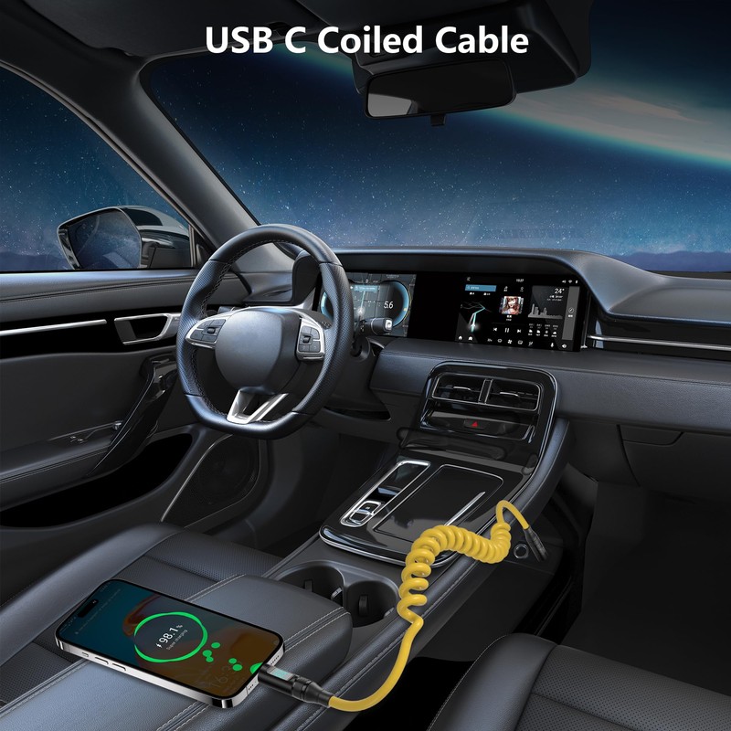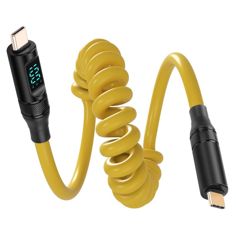 - USB C to USB C Cable, spiral C-type charger, designed in a spring shape, is portable and does not wind up, and can be stretched to the appropriate length according to your needs, saving space. (Maximum stretch 4FT)