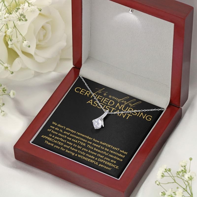 Certified Nursing Assistant Necklace Message Card Box Alluring Mahogany - We Don't Always Remember How - Appreciation Retirement Thank You