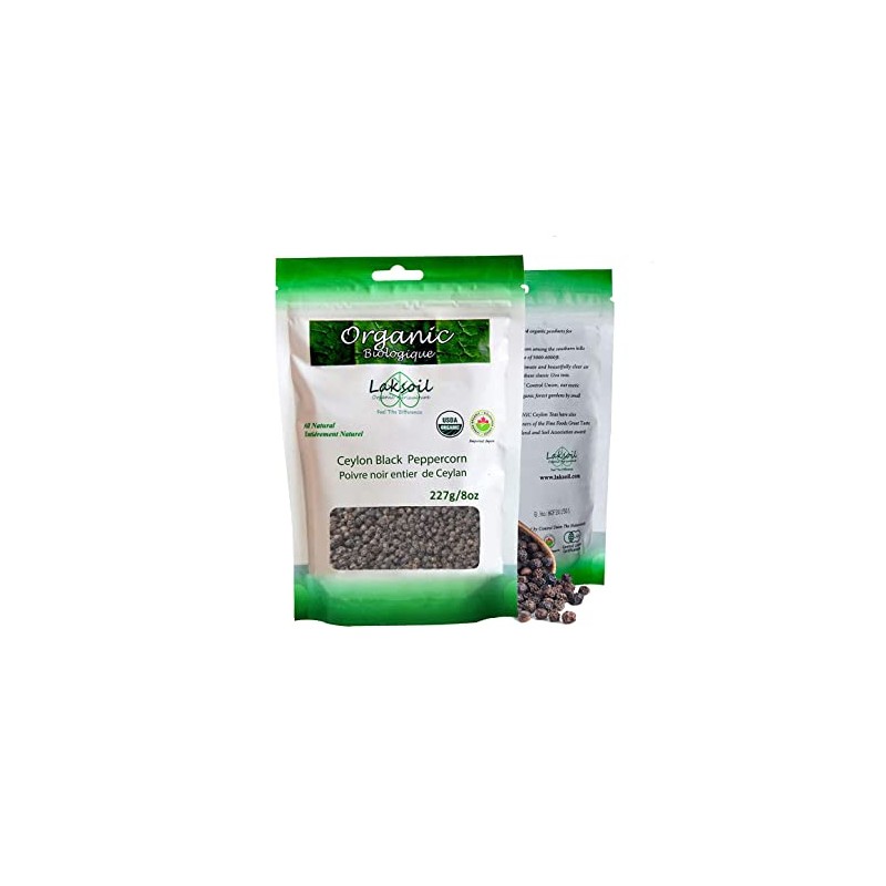 Certified Organic Ceylon Black Peppercorns 227g/8oz