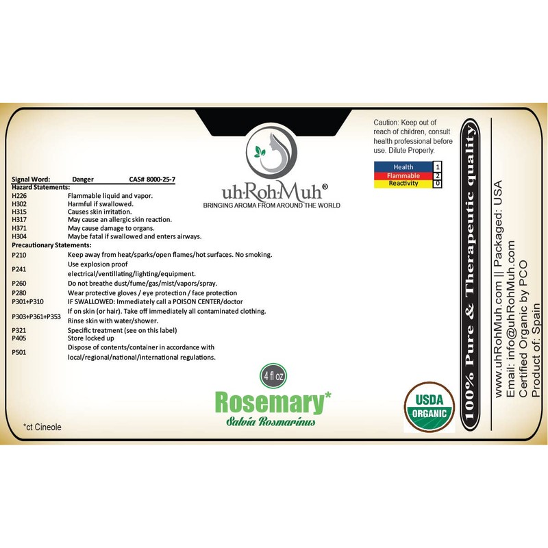 Certified Organic Rosemary ct Cineole Essential Oil || Spain - (4oz)