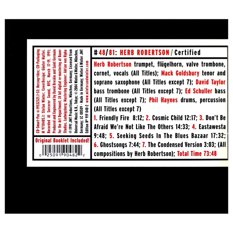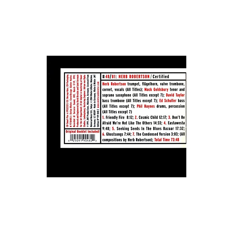Friendly Fire - Cosmic Child - Don't be afraid We'r not like the Others - Eastawesta - Seeking seeds in the Blues Bazaar - Ghostsongs - The Condensed Version / Herb Robertson, trompette, trombone, cornet & voix - Mack Goldsbury, saxo tenor & soprano - David Taylor, basse trombone - Ed Schulllllasse - Phil Haynes, battery & percussion