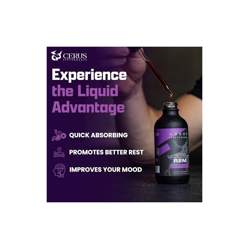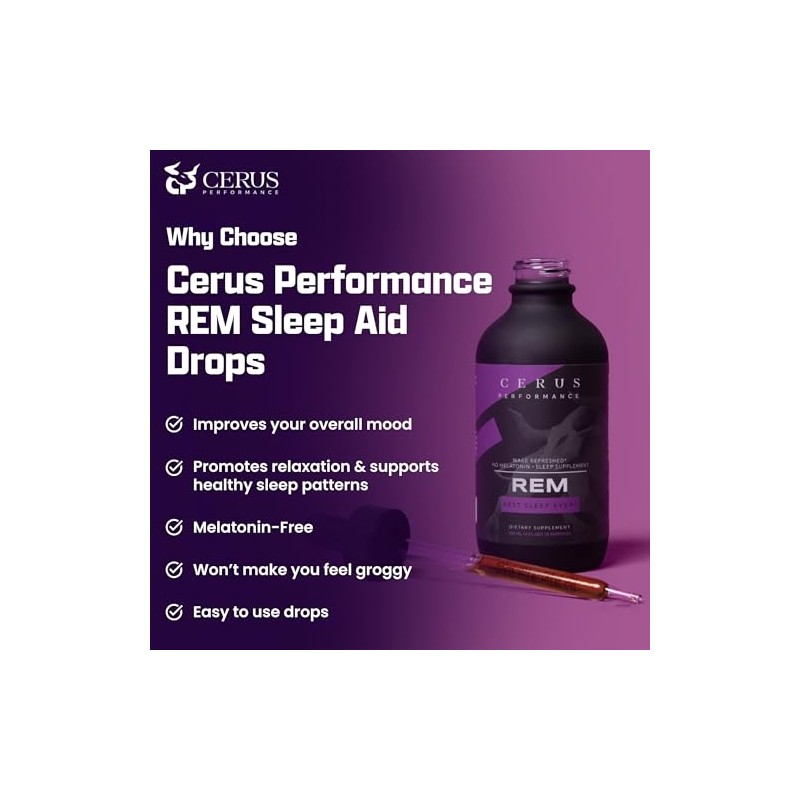 Cerus Performance REM Sleep Aid Drops - Liquid Supplement for Deeper, Enhance Sleep, No Grogginess Fast-Acting Formula - 4 oz