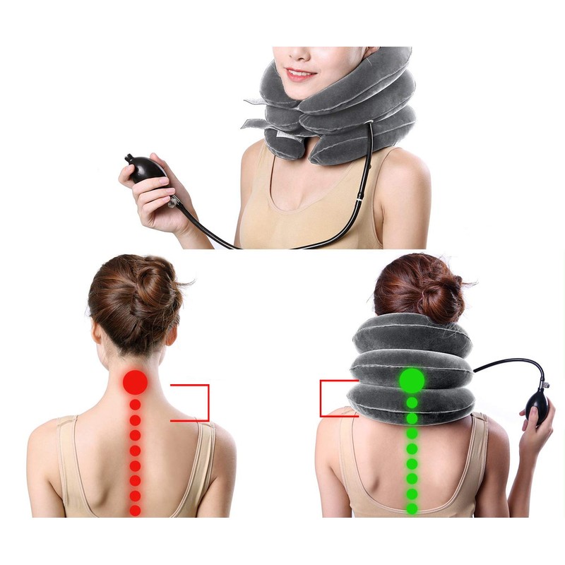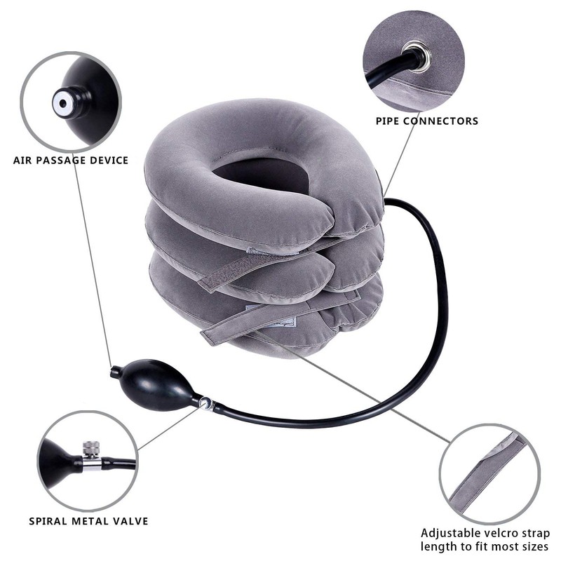 - Relax Your Neck: Cervical neck traction device helps increasing blood circulation of the structures of the cervical spine, helps to oxygenate muscles, nerves, tendons, so decreasing pain and promoting relaxation. If you have been in front of the computer, inflatable neck stretcher collar pillow will take away your neck tightness and will relax you and stretch the neck and shoulder muscles.