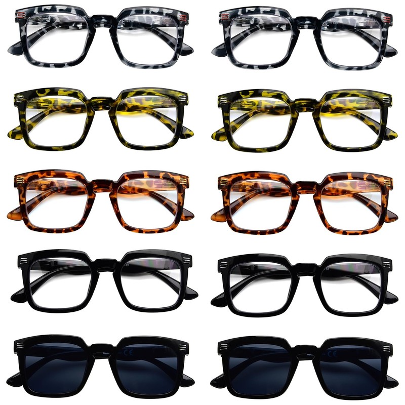 - CONVENIENT SET: You can have 10 pairs of CessBlu colorful ladies reading glasses in one set, including 2 pairs of reading sunglasses. It's great for home, office, bedside use, or outdoor reading. You can keep a pair at your desk, in your bag, and at your favorite reading spots. CessBlu trendy magnifying reading glasses for women will be your great fashion accessory.