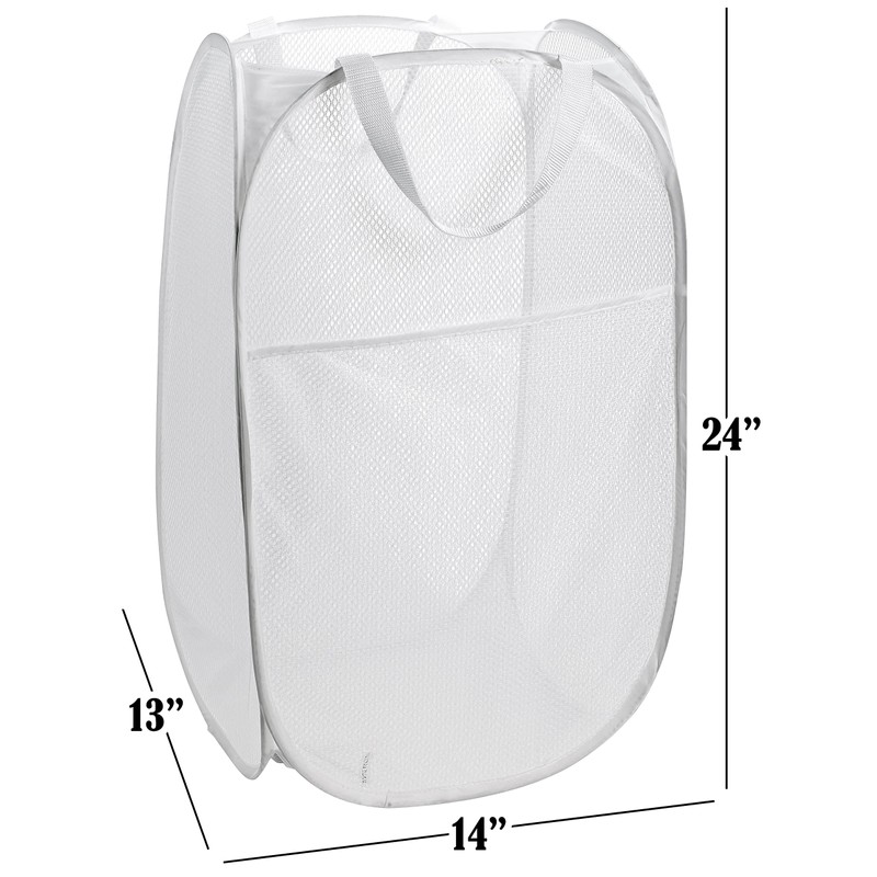 Pero la versatilidad de la cesta no termina con la lavandería; también es una solución de almacenamiento multifuncional para juguetes, equipos deportivos e incluso un lugar favorito para mascotas. Aunque es ligero, la cesta es lo suficientemente robusta como para manejar cargas pesadas gracias a sus asas reforzadas y construcción resistente. Todas estas características se combinan para elevar nuestra cesta emergente de malla de un mero accesorio a una herramienta esencial para el hogar. Experimenta un estilo de vida organizado y sin desorden y revoluciona tu rutina de lavandería hoy