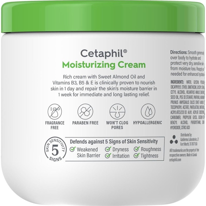 CETAPHIL Crema Hidratante 1 pz 453 g Restablece la Barrera Natural de la Piel en 1 Semana Recomendada por Dermatólogos para Piel Sensible