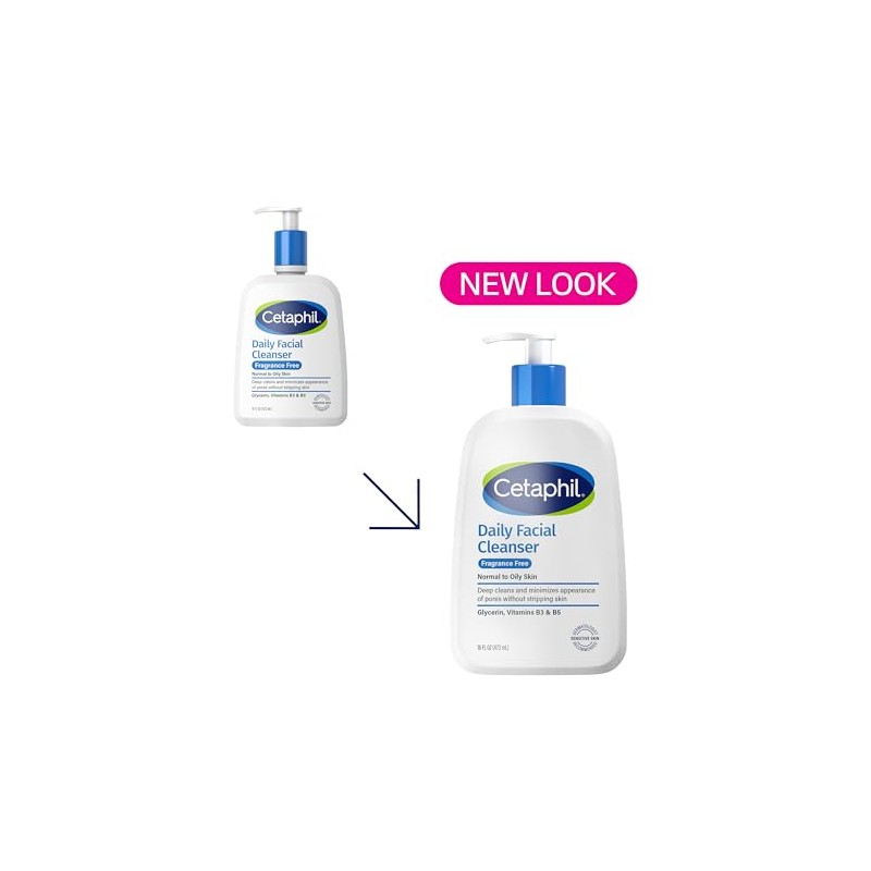 Cetaphil Face Wash, Daily Facial Cleanser for Sensitive, Combination to Oily Skin, NEW 16 oz, Fragrance Free,Gentle Foaming, Soap Free, Hypoallergenic