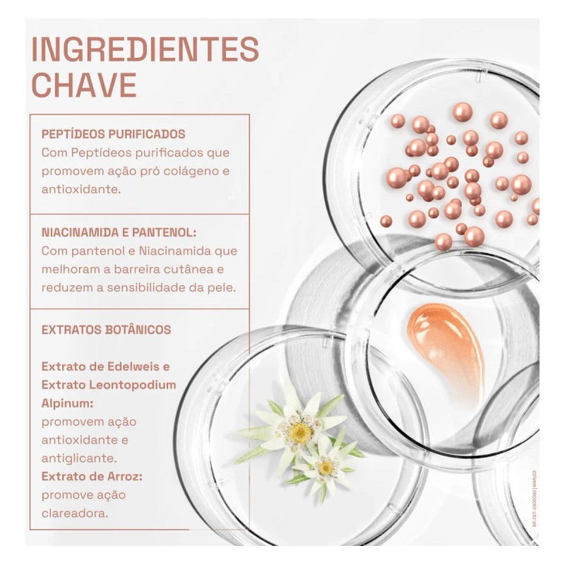Está formulado con extracto de Edelweiss, extracto de arroz, vitamina B5, glicerina y pantenol;