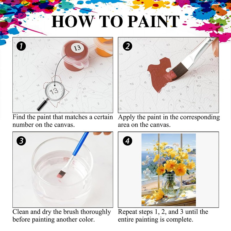 - Easy Paint by Numbers Kits for Adults: Paint by numbers is very easy to smear, just follow the instruction and create an amazing art work, making you feel like a painter.
