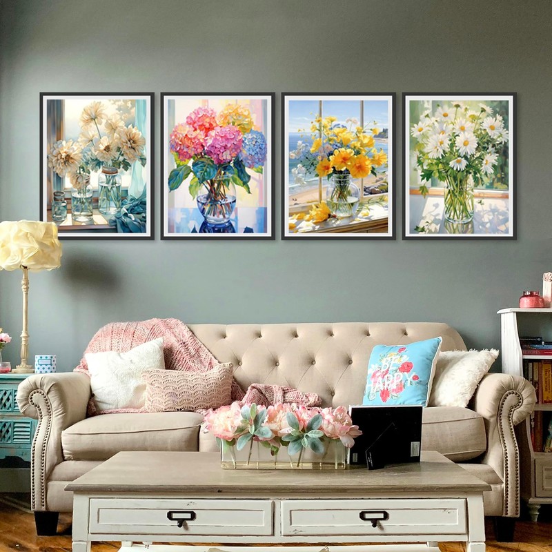 cewlonp 4 Pack Paint by Number for Adults-Flowers Paint by Numbers for Adults Beginner,Easy Canvas Adults Paint by Numbers for Gift Home Wall Decor(4 Pack,12x16inch)