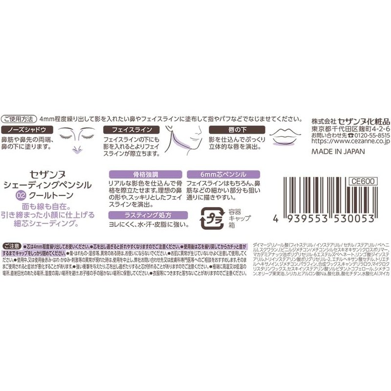 Cezanne 02 Cool Tone Shading Pencil, 0.05 oz (1.2 g), Flexible Face and Line, Skeleton Enhancement Shading Pencil