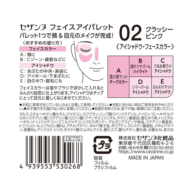 Cezanne Face Eye Palette 02 Classy Pink 0.1 oz (2.85 g) Complete Your Cheek & Eye Makeup
