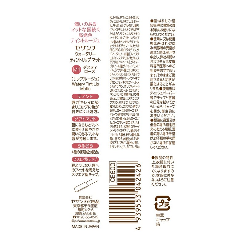 Cezanne Watery Tint Trip Mat M1 Dusty Rose 4.0g Tint Formula Mat Lip