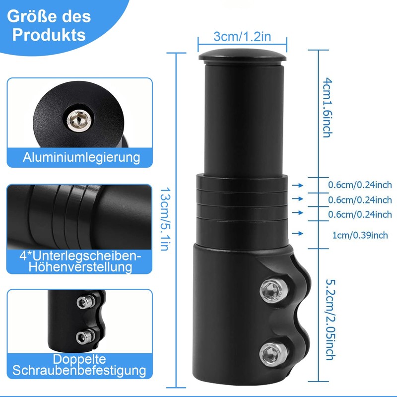 • Adjustable bicycle stem: the bicycle handlebar raiser can be adjusted in height by four washers, so you can freely choose from five heights that fit your desired height.