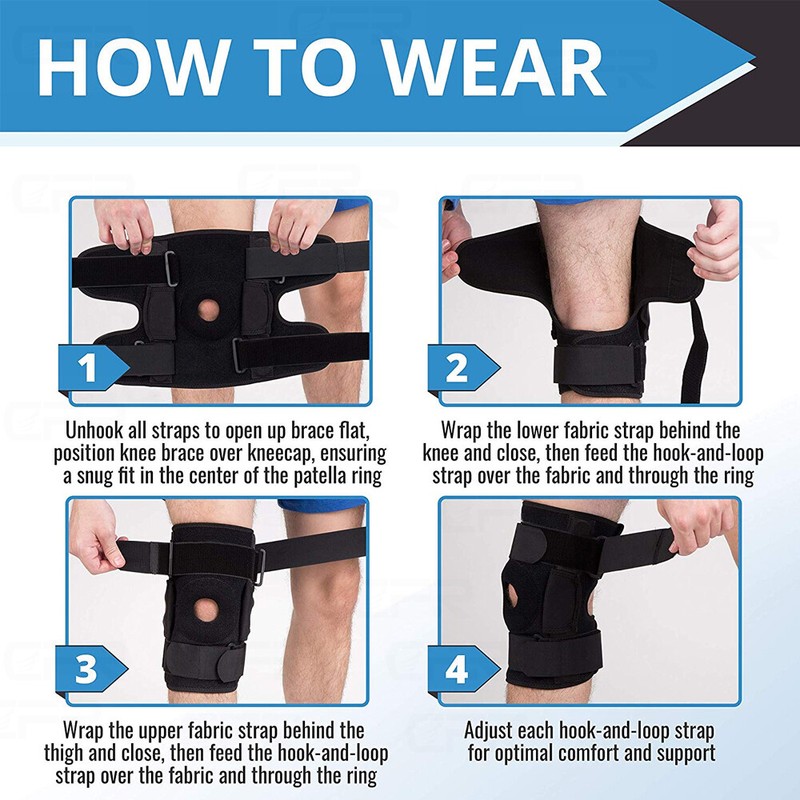 - Features: Adjustable, Dual Hinged Knee Support, Knee Brace, Knee Stabilizer, Patella Knee Support, Self Heating