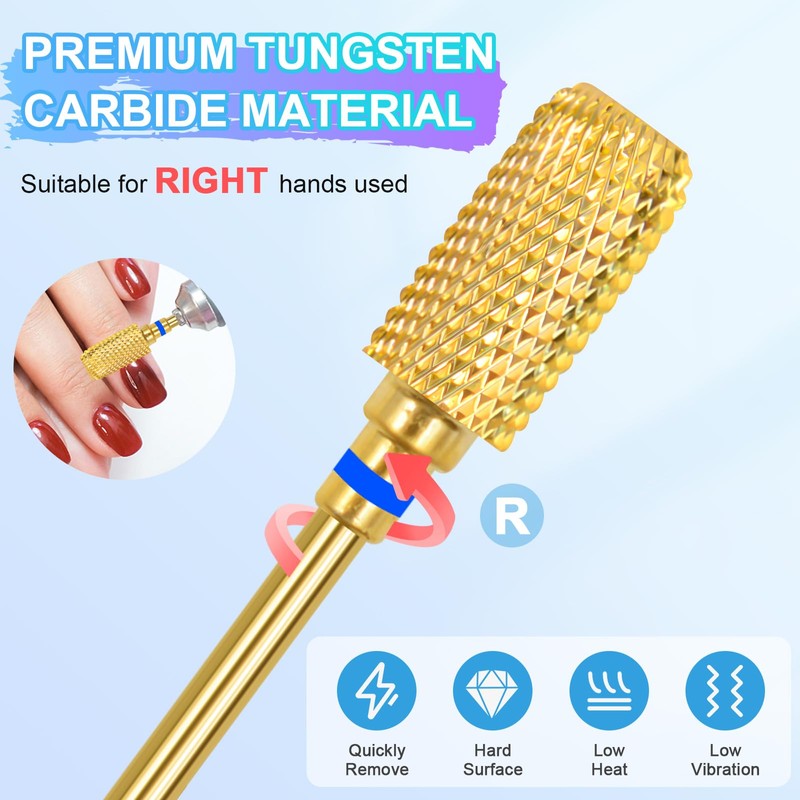 - Premium tungsten carbide nail cutter bits: Made of high-quality tungsten carbide material, which is stable and sharp enough to remove acrylic nails, hard gel nails, thick extension nails, builder gel nails and natural nails. With high-quality material and rigorous test design, these nail router bits produce less dust with low friction and heat, which protects the skin from overheating damage.