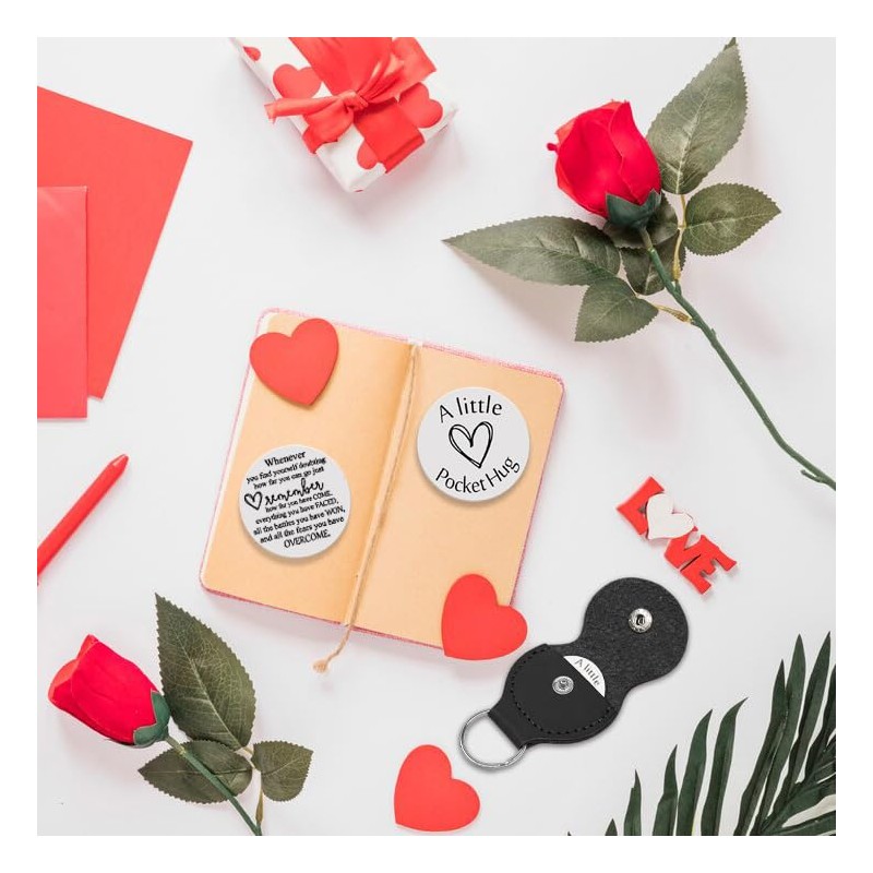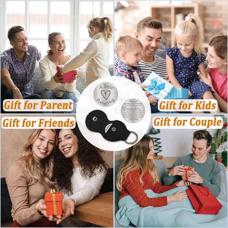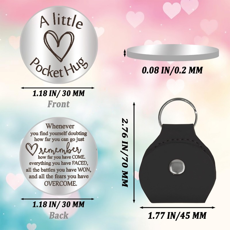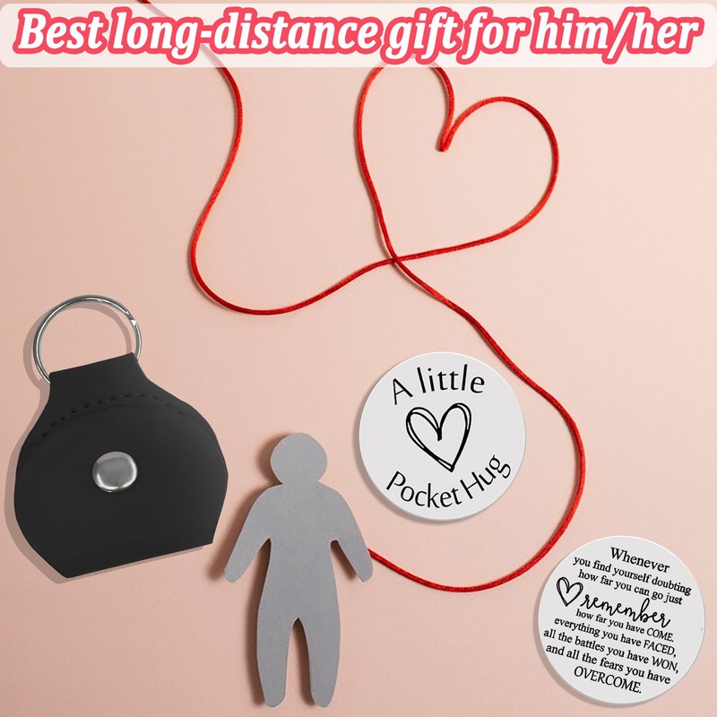 • 【Gifts for Lover】This pocket hug token is engraved with words and patterns on both sides: "A little pocket hug" and "Whenever you find yourself doubting how...". It is the best inspiring gift for a long-distance relationship. Give someone a hug from a distance and express your thoughts to him. Pocket hug key chain can provide practical comfort and emotional support. Even if you encounter any difficulties, don't give up easily, always reminding us that we will tide over the difficulties together.