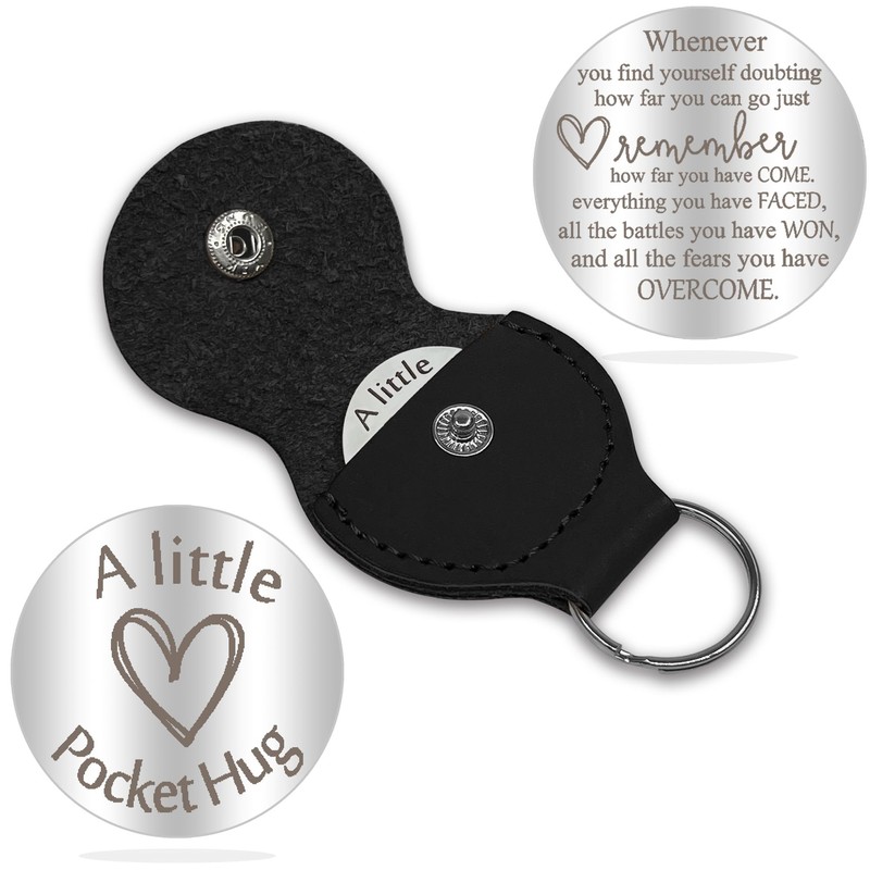 CGBOOM Pocket Hug Token Long Distance Relationship Keepsake Stainless Steel Double Sided Inspirational Gift with PU Leather Keychain - A little Pocket Hug Whenever you find youself doubting...