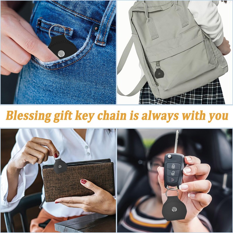• 【Keychain Size】The pocket hug token diameter: 1.18 IN (30 mm), the size of high-quality leather protective sleeve: 2*2.55 IN (50*65 mm). The keyring is the perfect size for easily identifying you keys. Do not worry about lose key. Easy to open keyring to accommodate all of your keys. Take action, give him/her a hug and give him a special precious carry-on gift.
