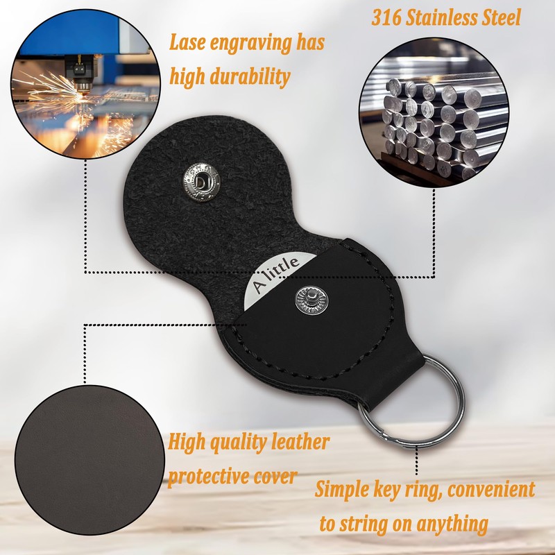 • 【Trustworthy material】Personalized keychain is made of lead-free high-grade stainless steel, hypoallergenic, durable, and not easy to rust, fade and change color. The surface of the keychain is polished and honed by hand, and the surface is round and bright. The protective cover made of high-quality leather protects the pocket stainless steel token from abrasion, and also hides personal information. Advanced laser engraving technology is used to ensure the durability of patterns and words.