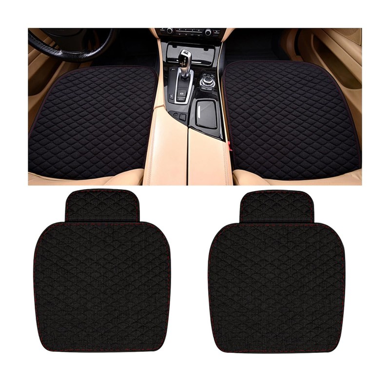 CGEAMDY 2 Stück Autositzkissen Aus Leinen, Universell Leinen Sitzauflagen, Atmungsaktiv Auto Fahrzeug Sitzschutz Vordersitzbezüge- Bequem Und Atmungsaktiv(Schwarz)