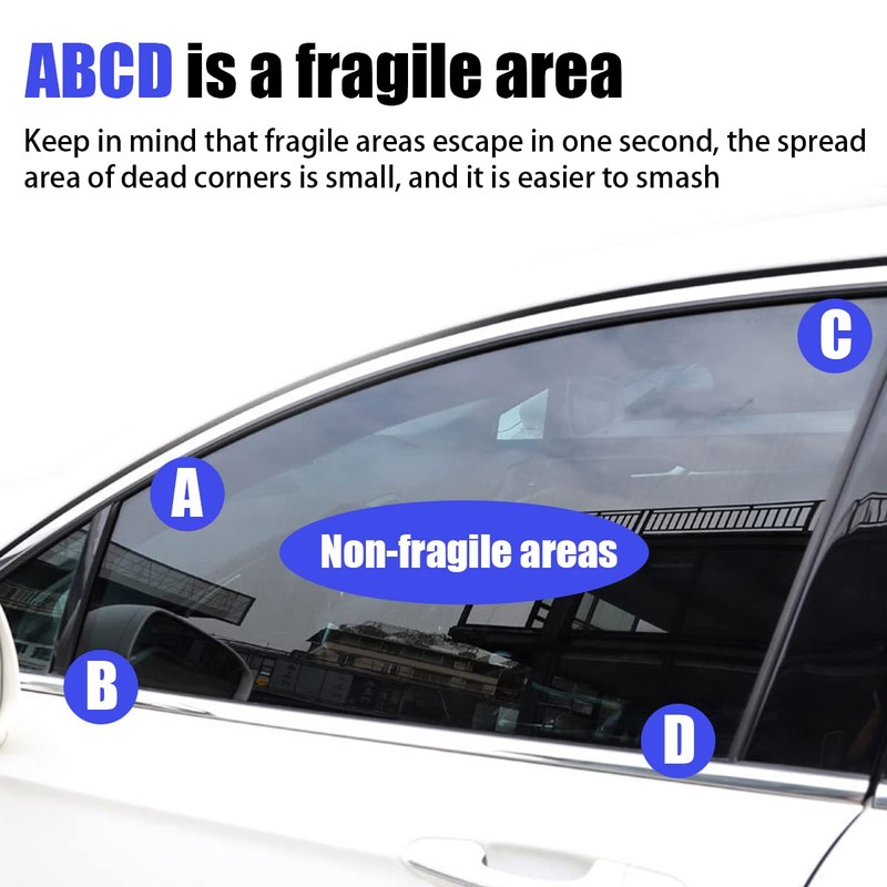 - 【Comfortable and Effortless】: Lightweight and easy to hold, it is effortless to use, even for students, the elderly and women. The sharp blade is able to partition the seat belt in an instant. In addition, this window breaker uses the mechanical window-breaking principle and is not afraid of water pressure, making it easy to break windows.