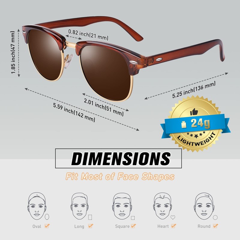 - ►LIGHTWEIGHT DESIGN. These retro style browline sunglasses for men and women are only 24g, bring you stress-free wearing experience. ★Lightweight design makes your wearing more comfortable.