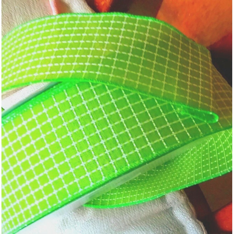 CH Green Cross Stitch 2 1/2" x 5 yd Wired Ribbon Basket Weave Texture Summer Beach