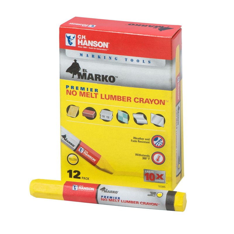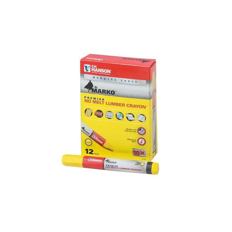 If you're looking for a yellow crayon to withstand some wear and tear, look no further than C.H. Hanson's yellow lumber crayon. The no melt crayon's marks withstand temperatures up to 300 degrees Fahrenheit. It can mark lumber, metal, concrete, and most other surfaces, yet it remains resistant to weather, fade, and sun. Extend each crayon's life by protecting it with crayon Armor.