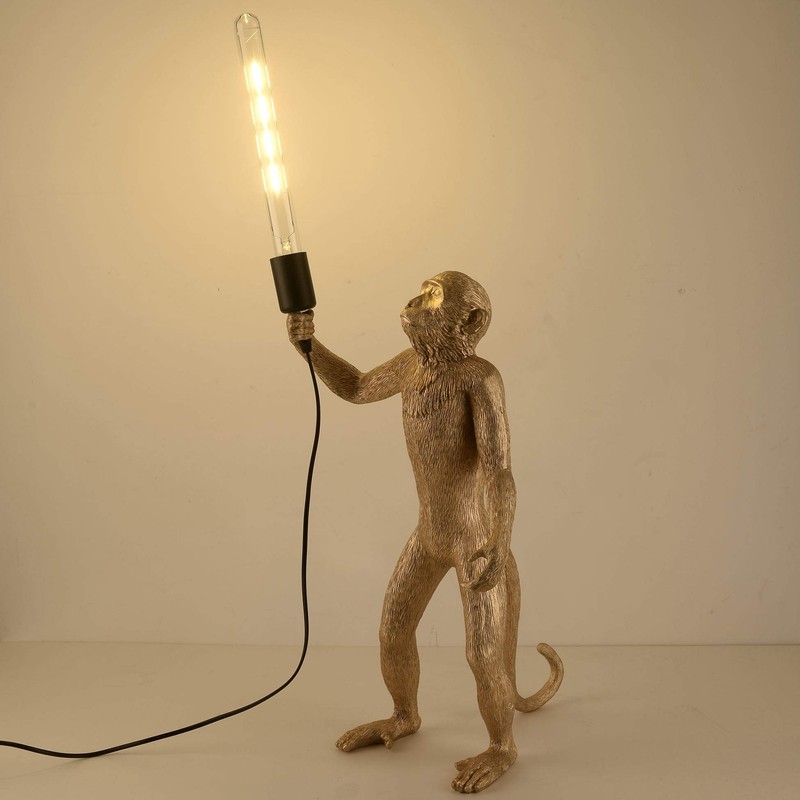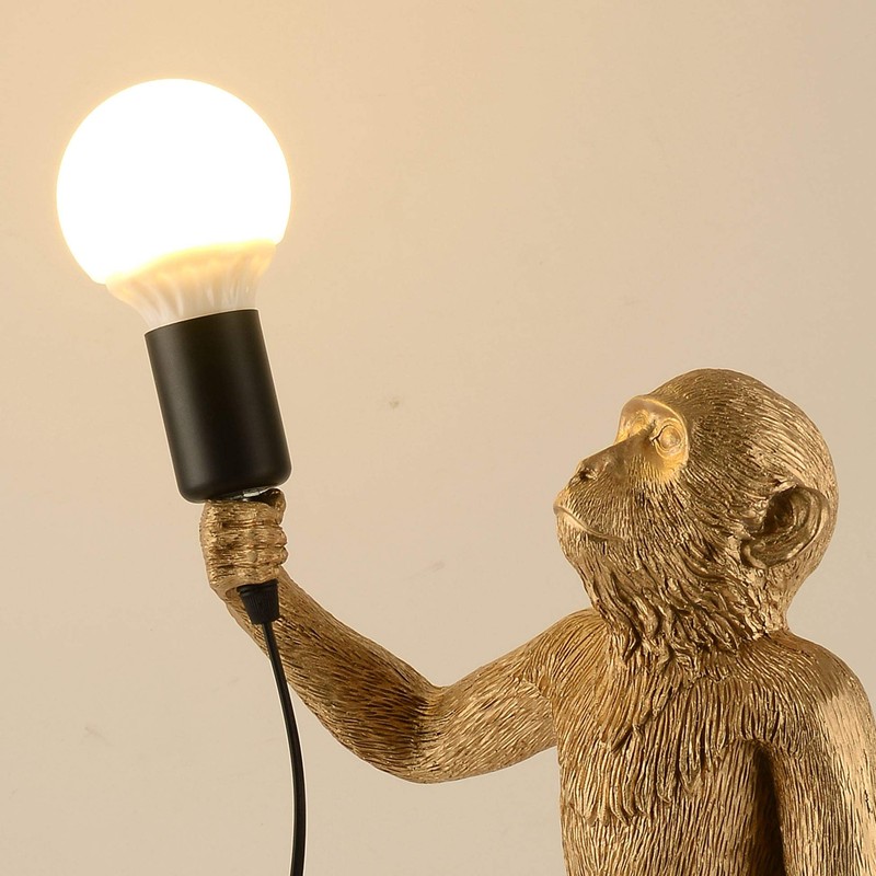 CHABEI Modern Table Light, Monkey Desk Lamp, Resin Standing Monkey Lighting for Living Room, Bedroom, Office, College Dorm (Gold)