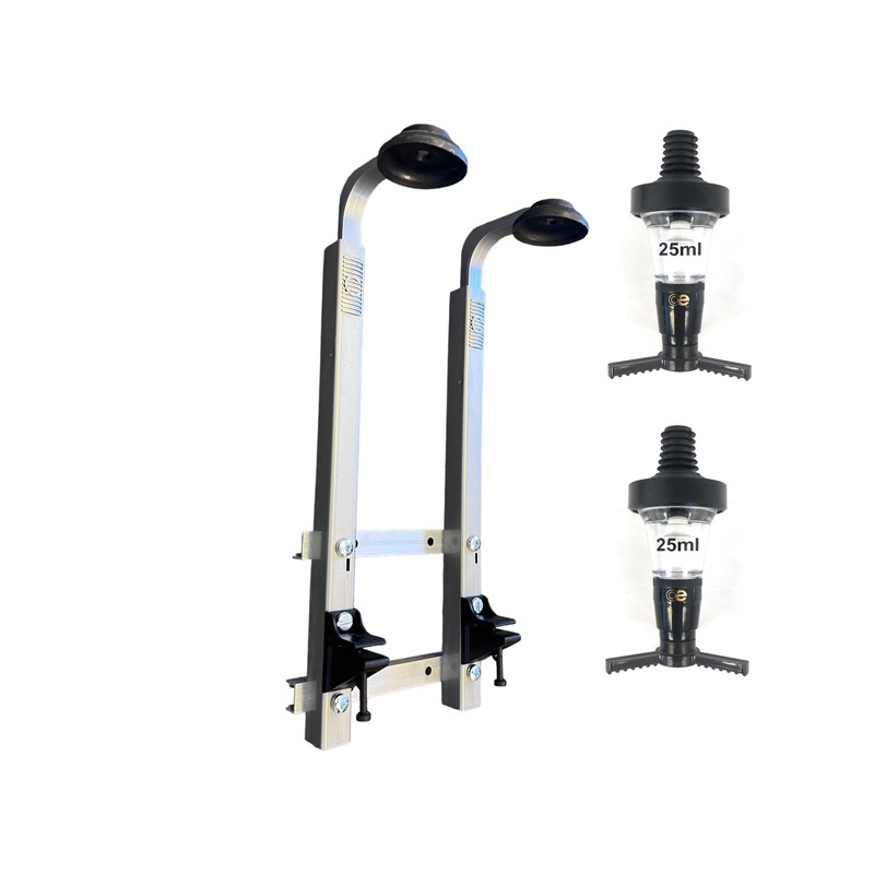 Chabrias Ltd 2 Professional Bottle Alcohol Spirit Measure Drink Dispenser Bar Butler Home bar Garage Man cave Set Wall Fixing Mount Bracket plus 2 x Traditional Optics (Black, 25ml)