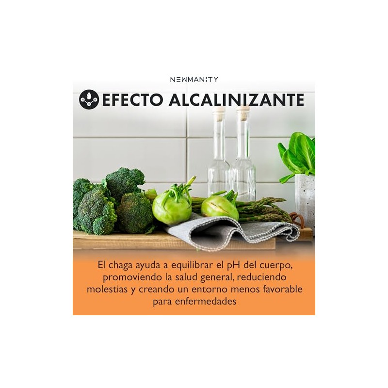 - Suplemento antioxidante natural: El Chaga es conocido por su poder antioxidante, ayudando a combatir los radicales libres y a mantener el equilibrio natural del cuerpo.