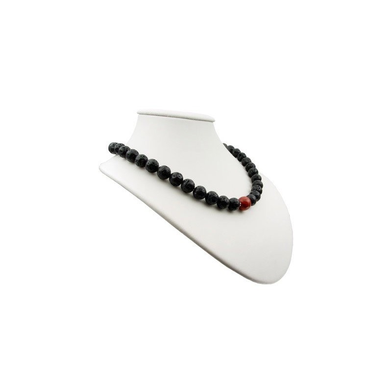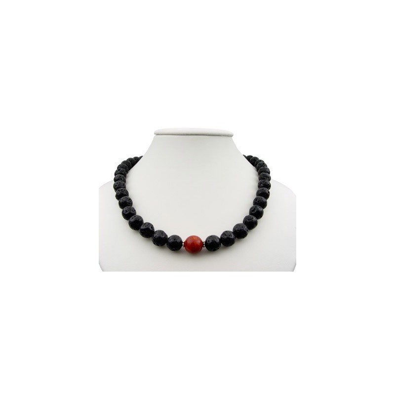 - Halskette aus Lava & Koralle, 12mm