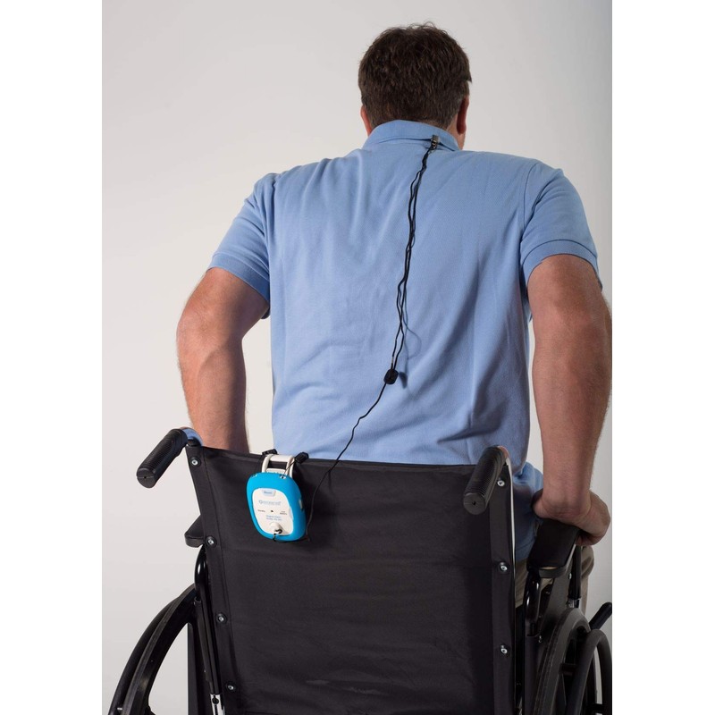 As soon as your patient moves to stand up, the magnetic cord will pull away & activate the alarm. (Press Reset button to silence alarm.)