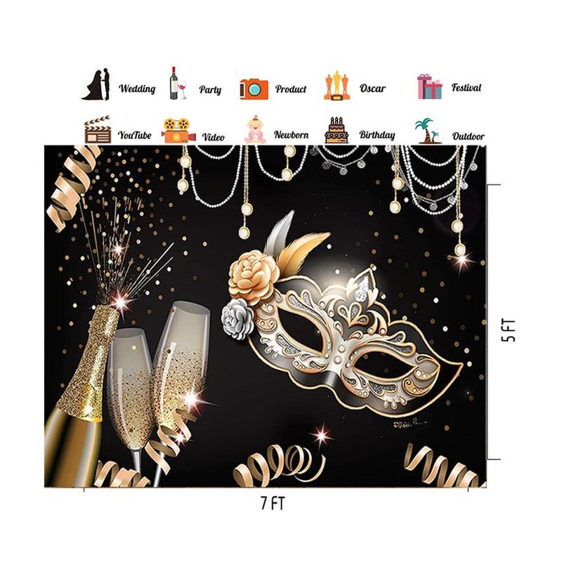 - 【MULTIPLE APPLICATION】- Mardi Gras Theme Photography Backdrop romantic atmosphere for Masquerade Backgrounds, and other special occasions. Ideals choice of family christmas party decoration, also product photography, as well as for YOUTUBE video backdrops or displays.