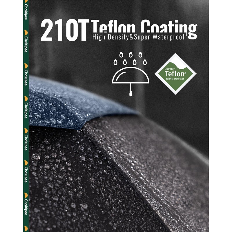 Thanks to the special waterproof and extremely tightly woven 210T Teflon (conventional umbrellas only use 190T polyester), the sturdy umbrella is extremely robust, making it also ideal for storms and strong winds.