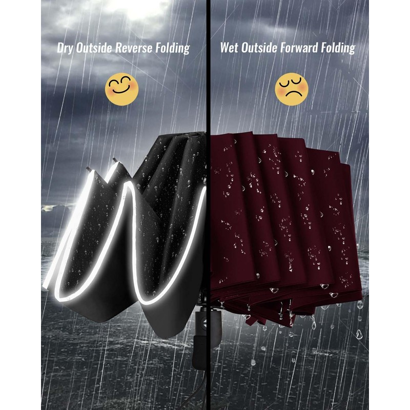- Reverse Folding System: When you close the inverted umbrella, the dry side always stays out, so you don't need to worry about putting the foldable umbrella in your bag or car.
