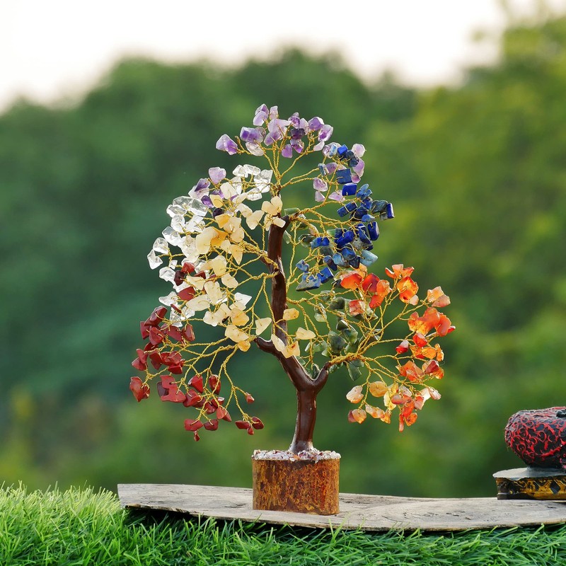 - 7 Chakra Tree Of Life - Enhance your positive energy with our 10-12 inches seven chakra tree, featuring gemstones chakra crystal to promote healing and balance. Gem tree stones of the crystal tree of life are coupled with a golden wire including a natural wooden base. Premium meditation accessories, this office decor enhances the spiritual energy around you.