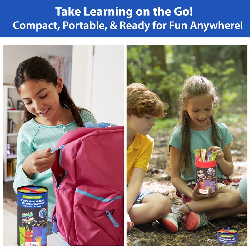 - SPOT SCIENCE EVERYWHERE INDOOR OR OUTDOOR: Play the most exciting stem game by spinning the spinner and picking a stick. Race to find an object that fits the description. The first to win 5 sticks wins the game