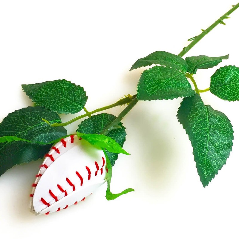 - REALISTIC DESIGN! Measuring 14.5" in length from the top of the bud to the bottom of the stem, this realistic looking baseball rose looks like something you picked right out of a garden! Proudy display it in a vase on the table, and listen to your friends and family comment on how awesome this baseball rose is!
