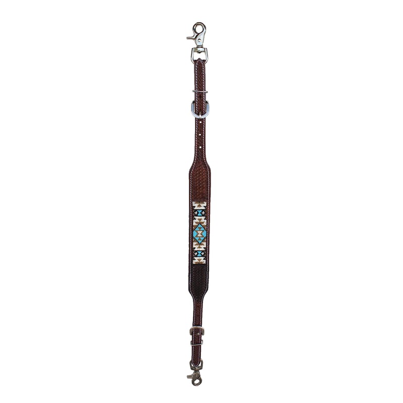 - Challenger wither breast collar strap made from top quality full grain hand-tooled leather. Beautifully accented with basket weave tooling and a beaded inlay. Wither straps helps keep breast collar in perfect position. Easily adjustable, complete with quick trigger snaps on both ends. Rust-free stainless steel hardware.