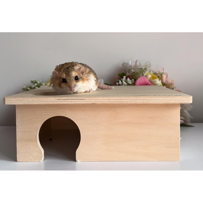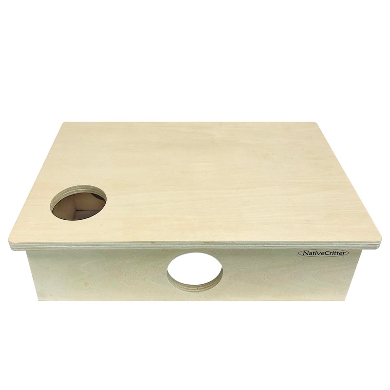 The NativeCritter Chamber Box is an enclosed all-natural wood hideaway with multiple chambers for small animals such as Dwarf hamsters, Golden hamsters, Degus, Gerbils and other small animals. This cozy hand-made chamber box comes fully assembled and is made with 100% pet safe chewable birch woods. Your furry friend will enjoy burrowing, hiding and sleeping in his own Chamber Box. Smooth surfaces, open bottom, 3 chambers.  Bury in bedding and watch you pet make an underground home for your pets. It's designed to fit most habitats to provide the perfect place for nesting.