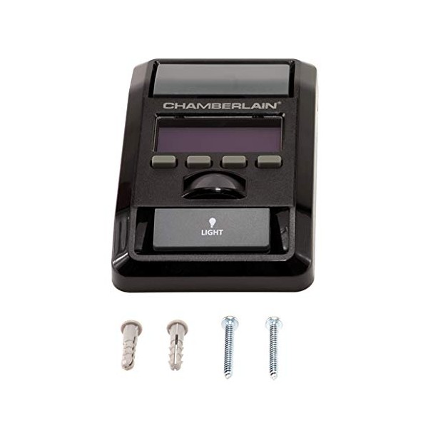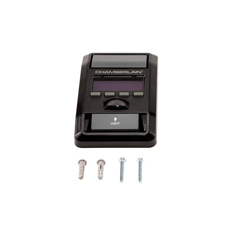 - This is a Chamberlain Wall Mounted, Multi-function Door Control. For use with various Chamberlain Security+ 2.0 Garage Door Openers; manufactured after 2011. This menu-driven multi-function panel offers the resident complete control of their garage door opener. The LCD display features inside garage temperature, time and system diagnostics, and Timer-to-Close set up. The featured light button allows user to control garage door opener work lights. Check the manual or replacement parts diagram