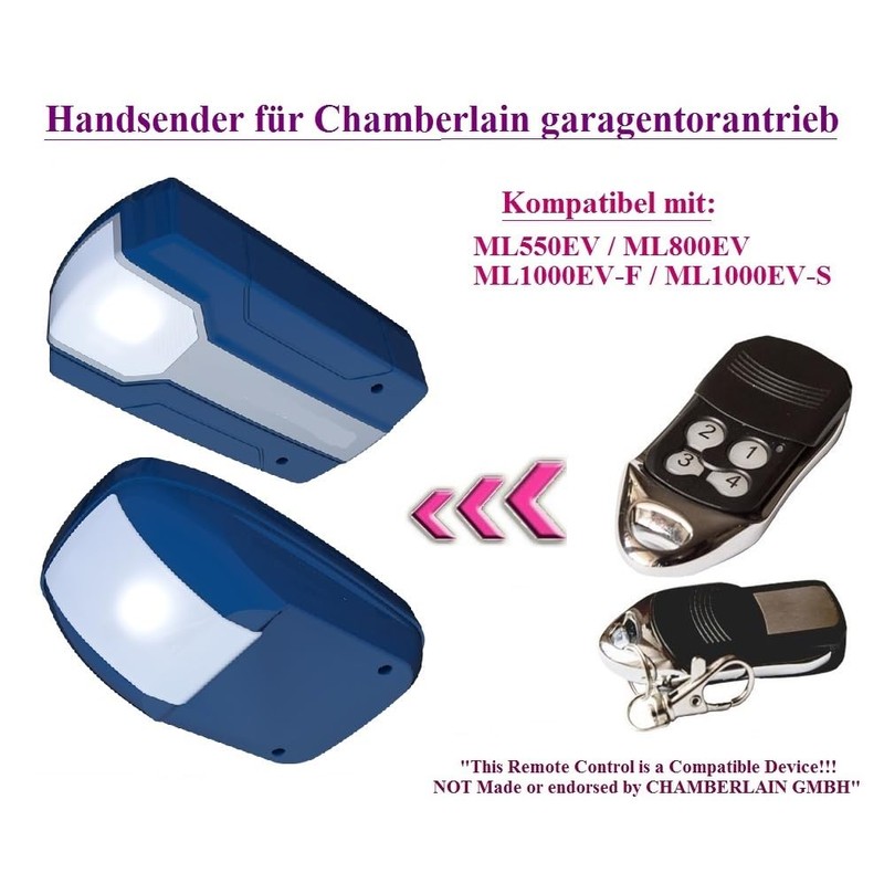 - This handheld transmitter compatible with: Chamberlain ML550EV / ML800EV / ML1000EV-F / ML1000EV-S / ML510EV Basic / ML700EV Comfort / ML1000EV Premium / LiftMaster LM55EVS / LM60EVS / LM80EVS / LM100EVS / LM130EVS / LM50EV / LM100EVO / LM650EV Garage Door Opener