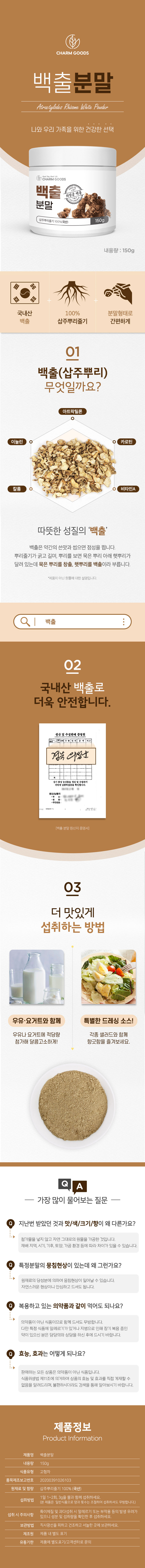 - Product Name: Baekchul Powder 150g