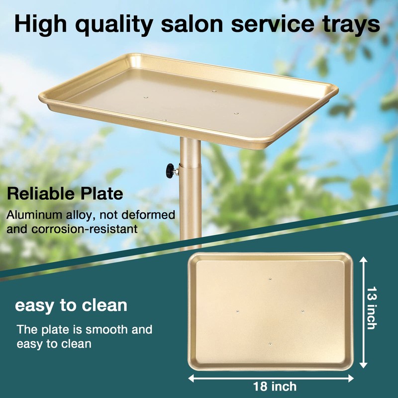 Champagne Gold Salon Tray, Salon Tray Cart Champagne Gold Salon Color Tray with Adjustable Height, Salon Tray on Wheels, Ideal Use As Tattoo Tray & Deantal Tray, Durable and No-Rust(Champagne Gold)