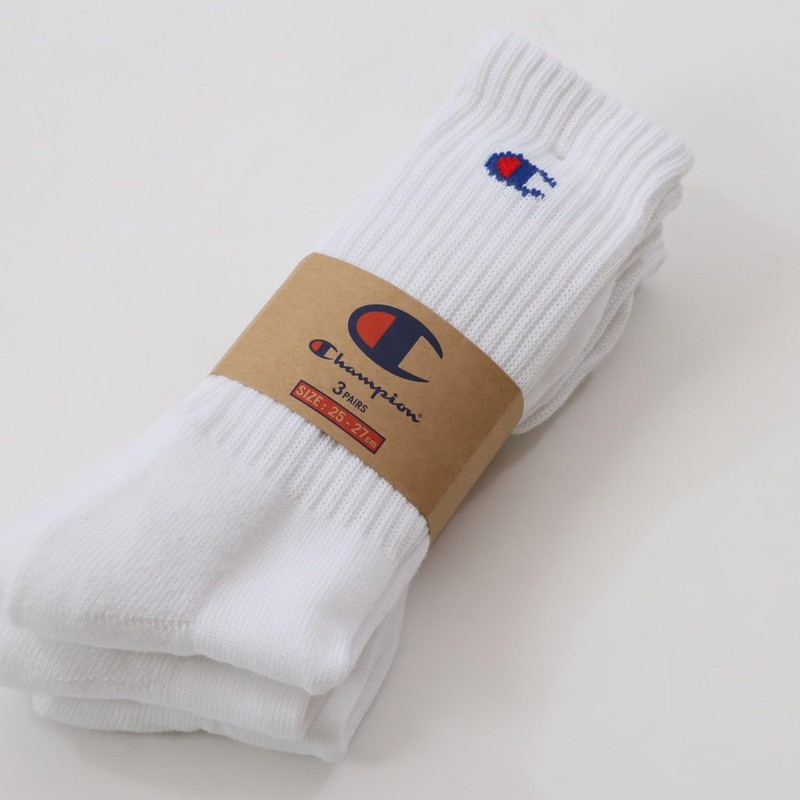 Champion CMSCY002/CMSCH002 Men's High Socks, Plain Socks, 3-Pair Set, Half Pile, One Point Logo, Full Length Socks, white, 25.0-27.0 cm